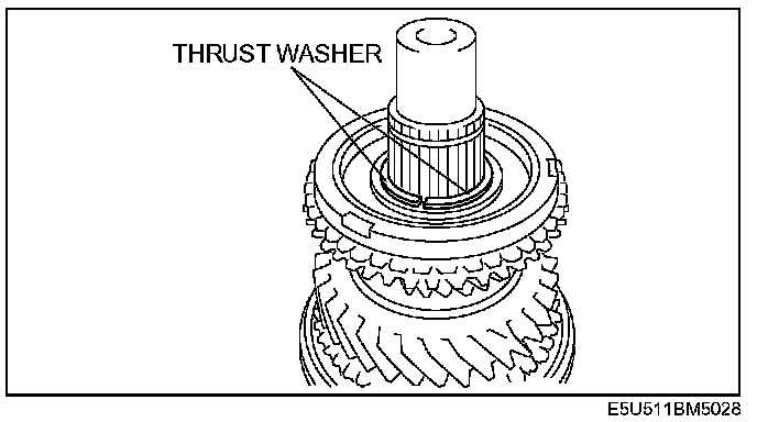 5th/6th Clutch Hub Component Assembly Note1. Place the thrust washers onto the 6th gear.