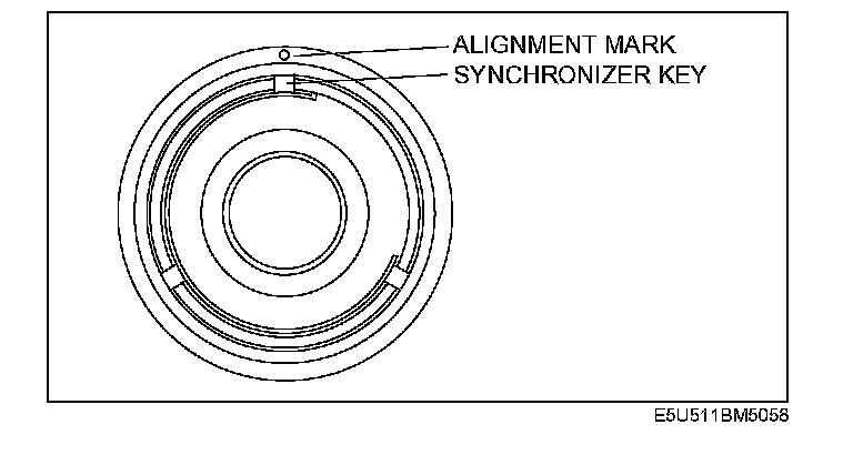 ^ Align the clutch hub sleeve alignment mark with the clutch hub synchronizer key installation position and assemble.
