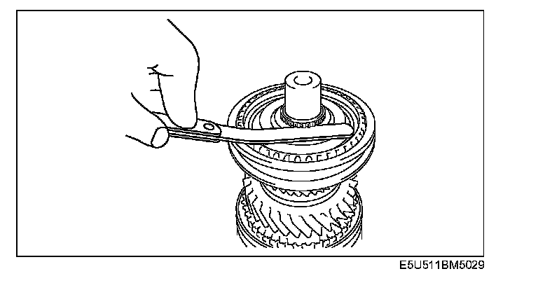 5. Measure the clearance between retaining ring and groove of the mainshaft.