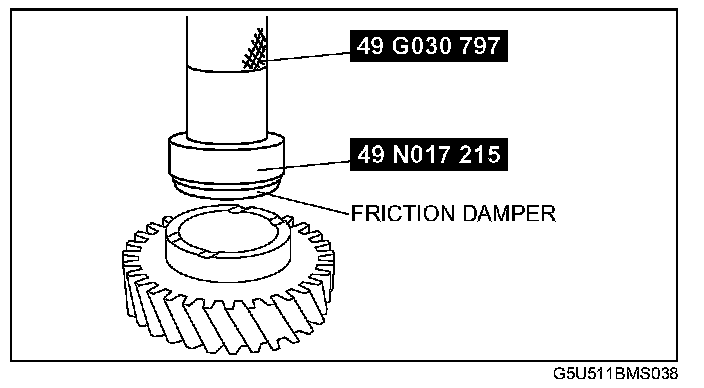 Reverse Idler Gear Component Assembly Note1. Using the SST, install the friction damper to the reverse idler gear.