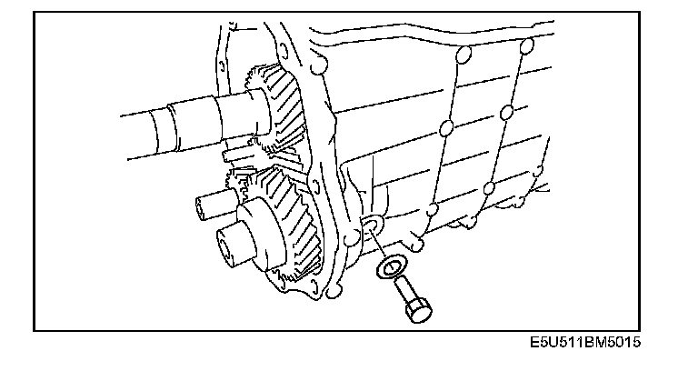 5. Install the reverse idler gear shaft retaining bolt.