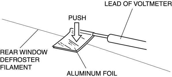 - Directly touching the rear window defroster filament with the lead of the voltmeter could damage it. Wrap aluminum foil around the end of the lead and test the rear window defroster filament by touching it with the foil.