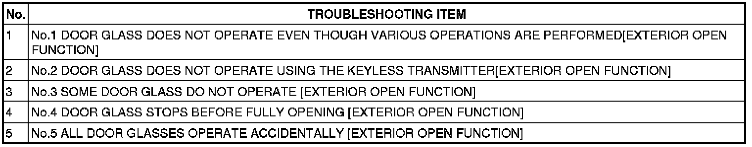 SYMPTOM TROUBLESHOOTING CHART [EXTERIOR OPEN FUNCTION]