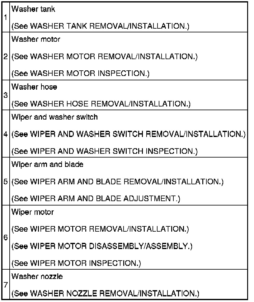 WIPER/WASHER SYSTEM LOCATION INDEX
