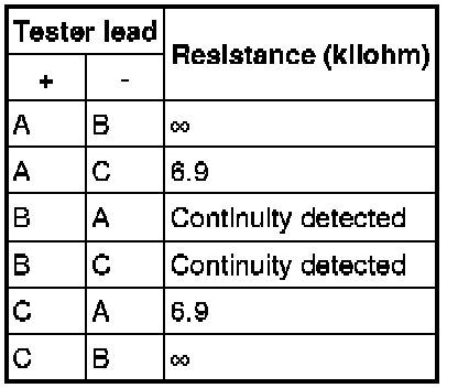 1. Verify that the continuity between the power MOS FET terminals is as indicated in the table.