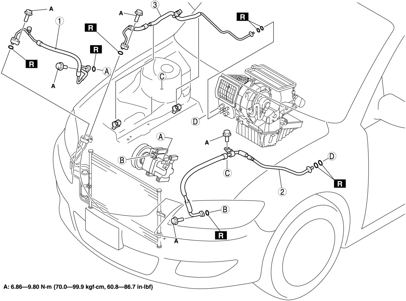 8. Remove in the order indicated in the table. Do not allow compressor oil to spill.