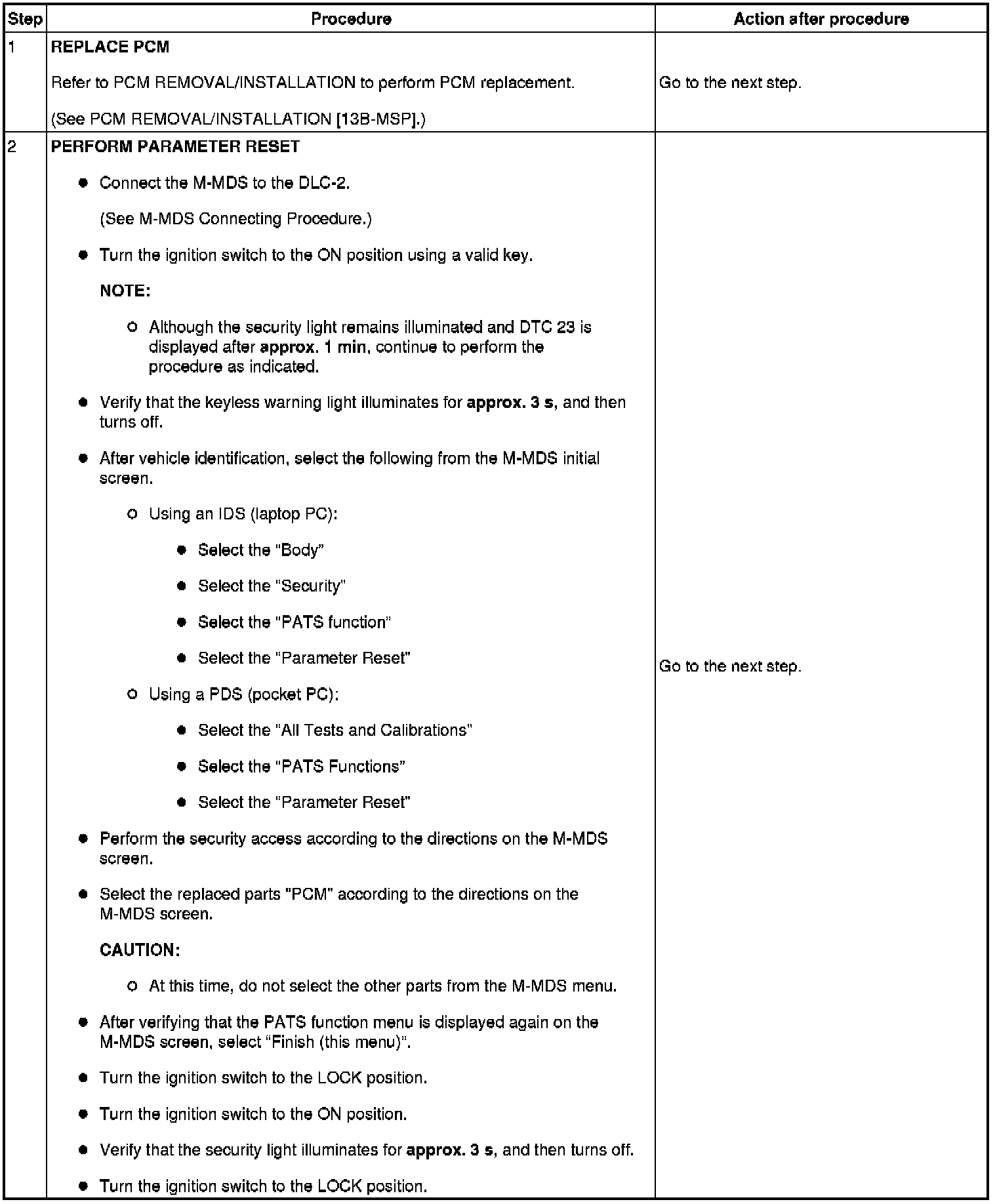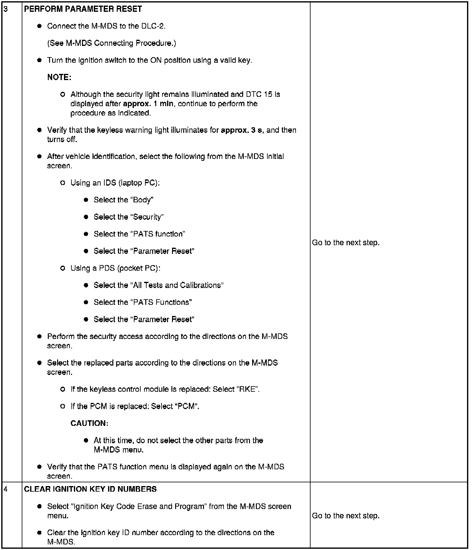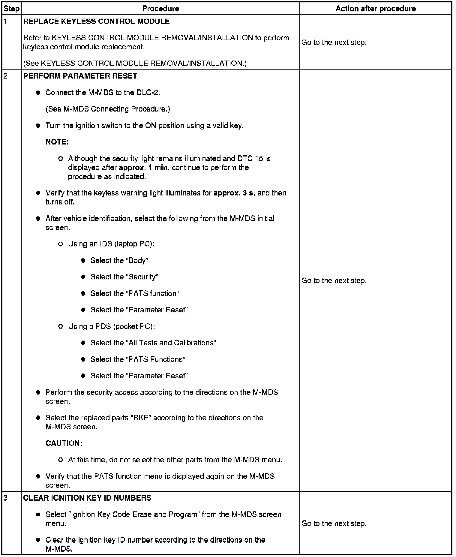 No.6 Programming Procedure Due to Simultaneous Replacement of Immobilizer System-related Parts (PCM and Keyless Control Module)