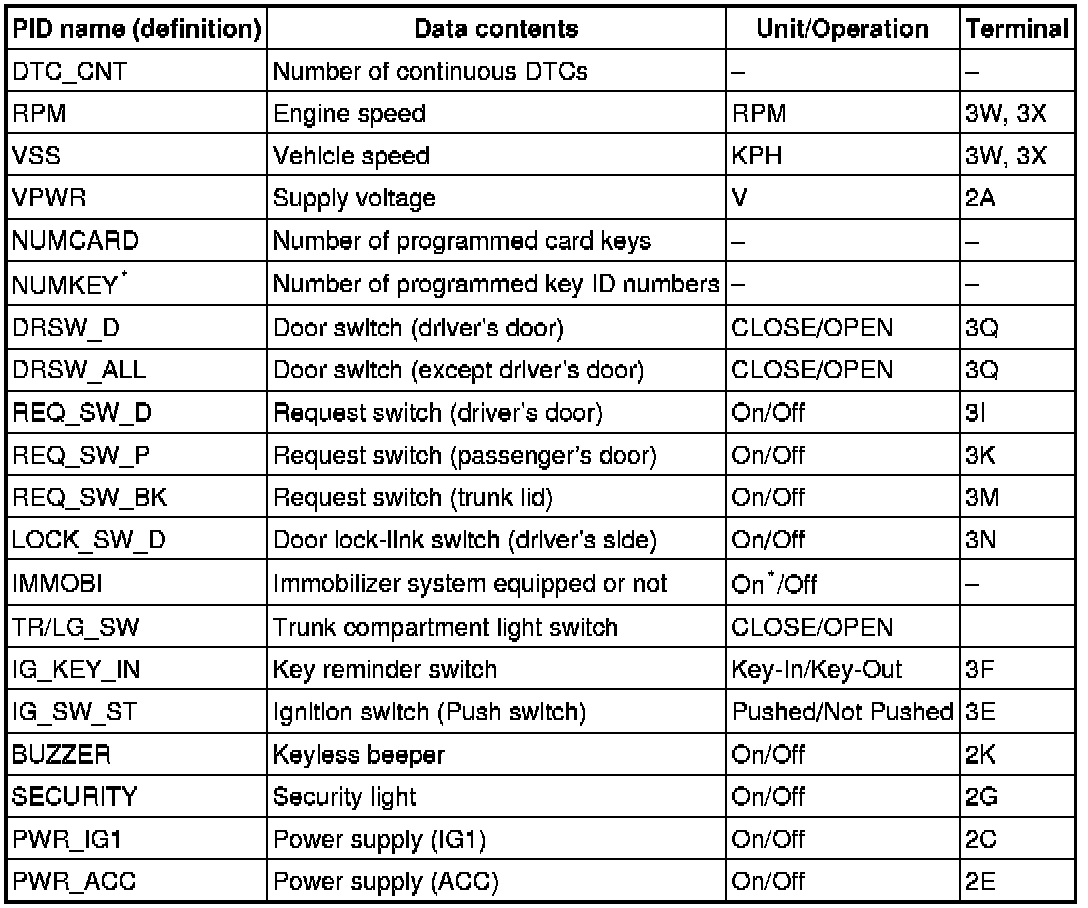 PID/DATA MONITOR TABLE [ADVANCED KEYLESS AND START SYSTEM]