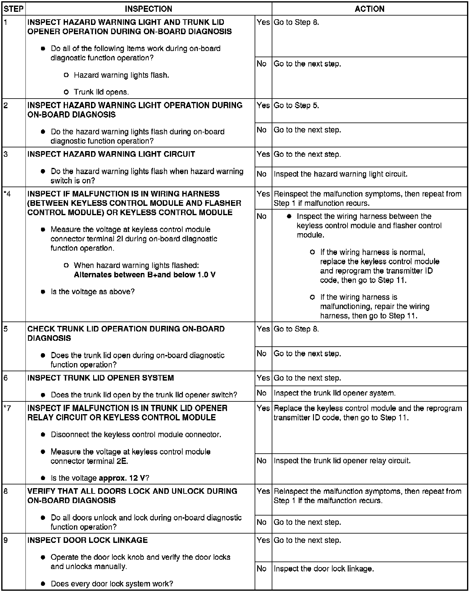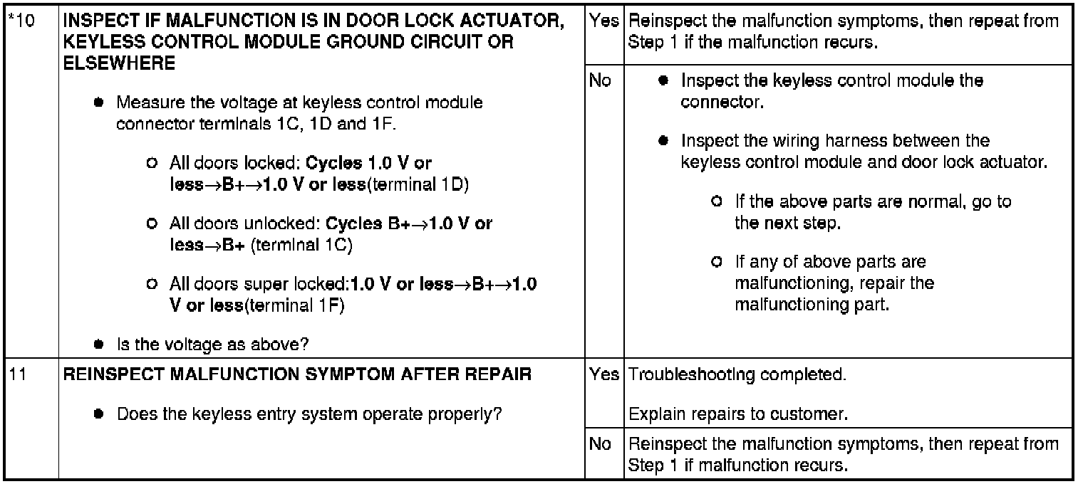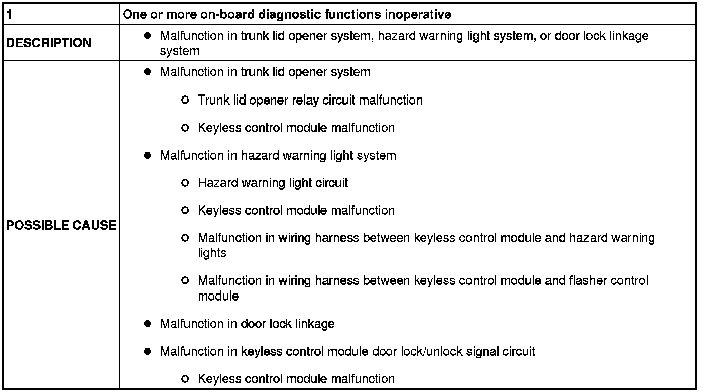 No.1 One Or More On-Board Diagnostic Functions Inoperative [Keyless Entry System]