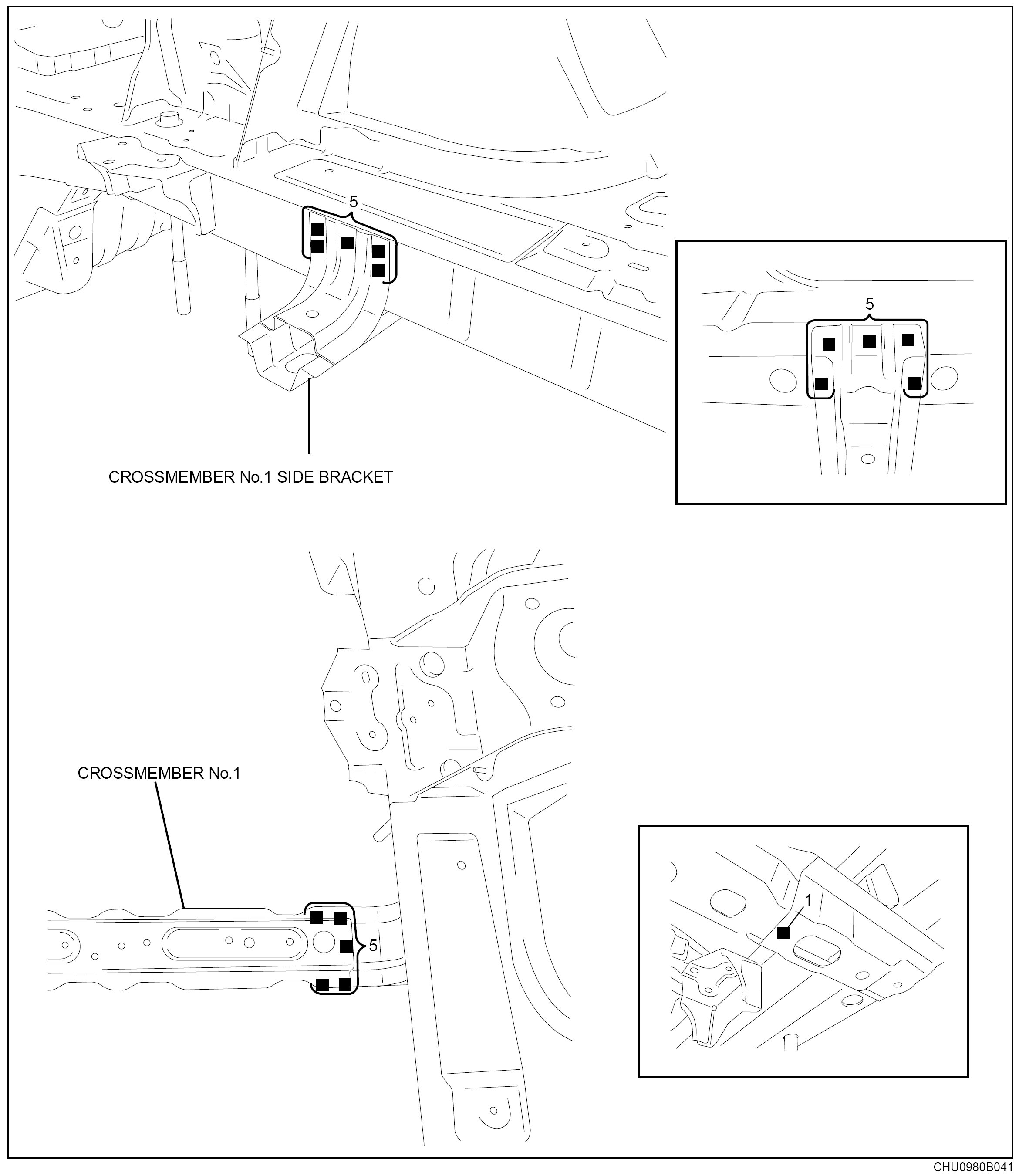 1. When installing new parts, position each part so that the section measurement aligns with the body dimension.
