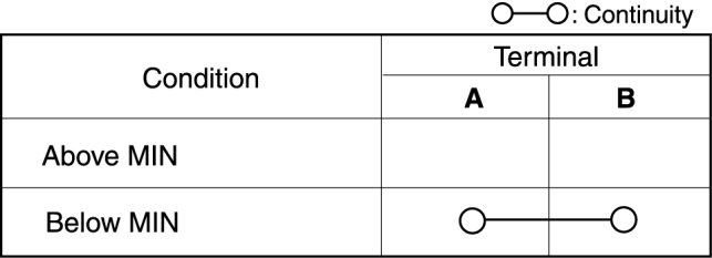 2. Inspect for continuity according to fluid level between the brake fluid level sensor terminals.