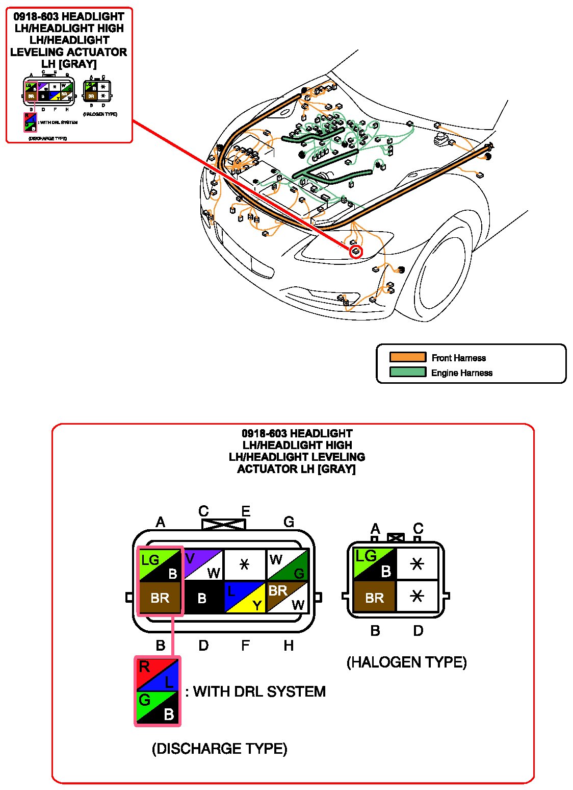 Headlight LH/Headlight High LH/Headlight Leveling Actuator LH: