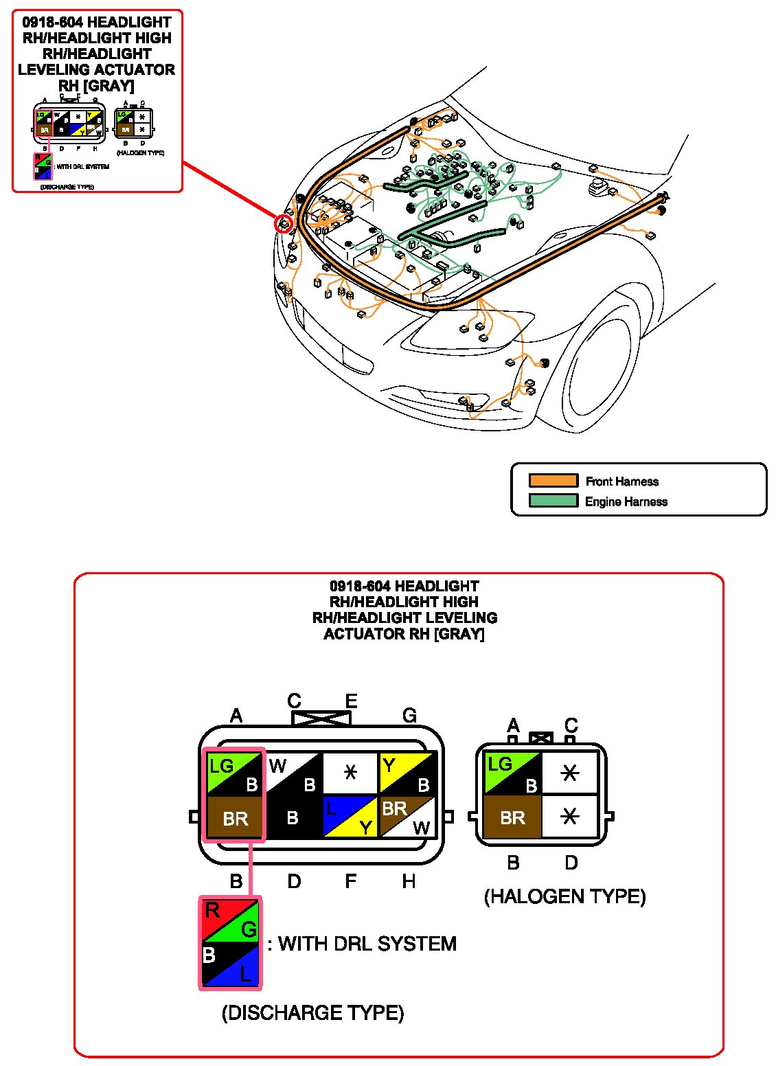 Headlight RH/Headlight High RH/Headlight Leveling Actuator RH: