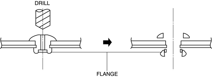 2. Remove the flange using a drill (5 mm {0.20 in} drill bit).