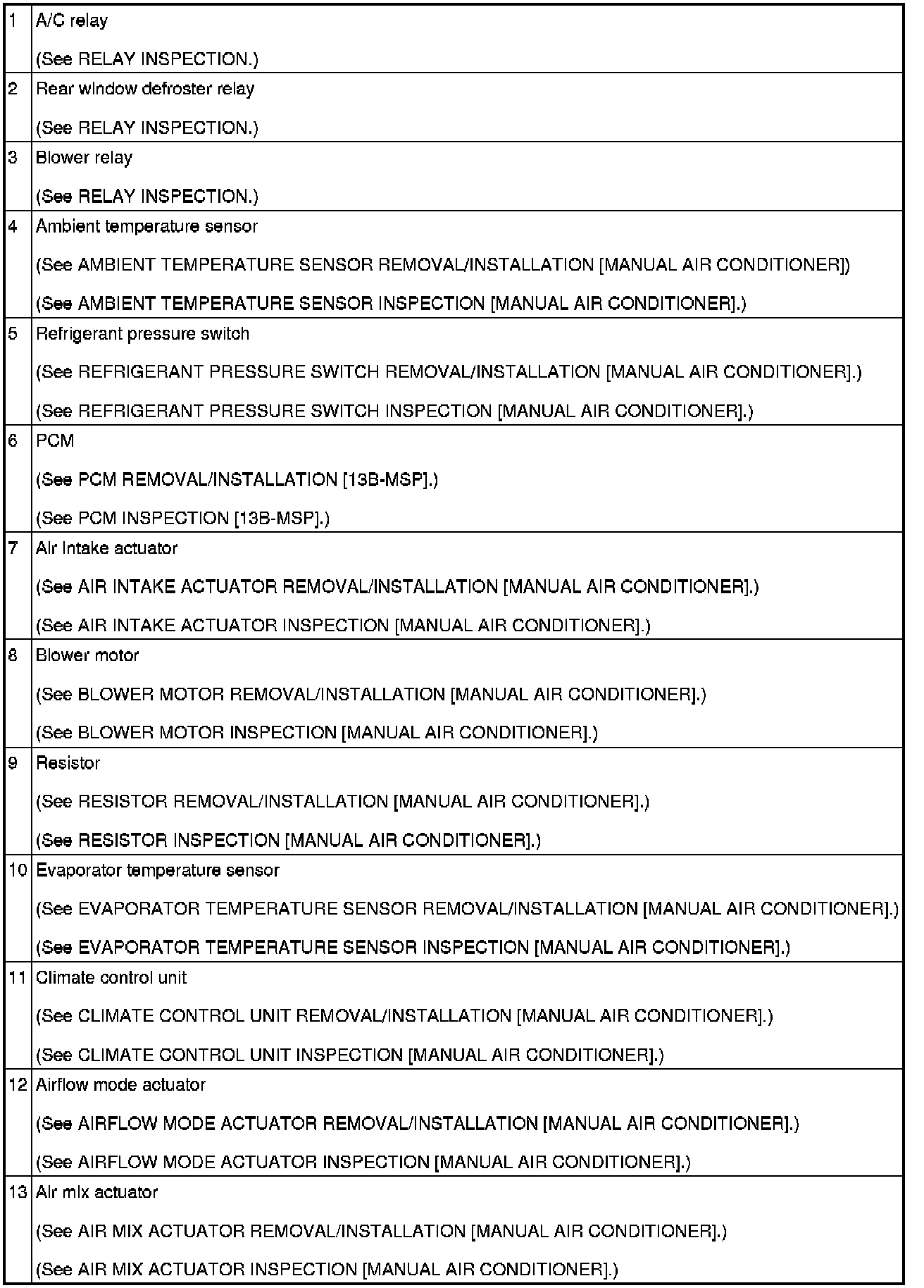 HVAC CONTROL SYSTEM LOCATION INDEX [MANUAL AIR CONDITIONER]