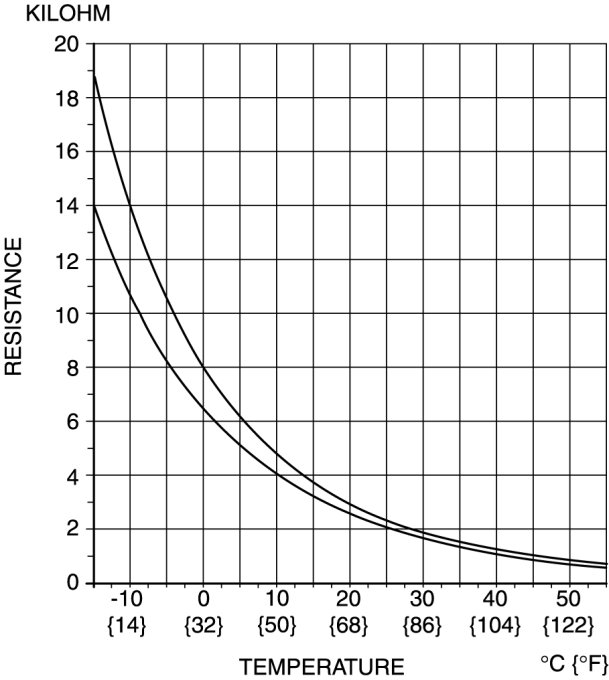 - If the characteristics of the passenger compartment temperature sensor are not as shown in the graph, replace the passenger compartment temperature sensor.