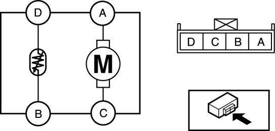 2. Connect battery positive voltage to passenger compartment temperature sensor terminal A, ground to terminal C, and then verify that the fan operation.