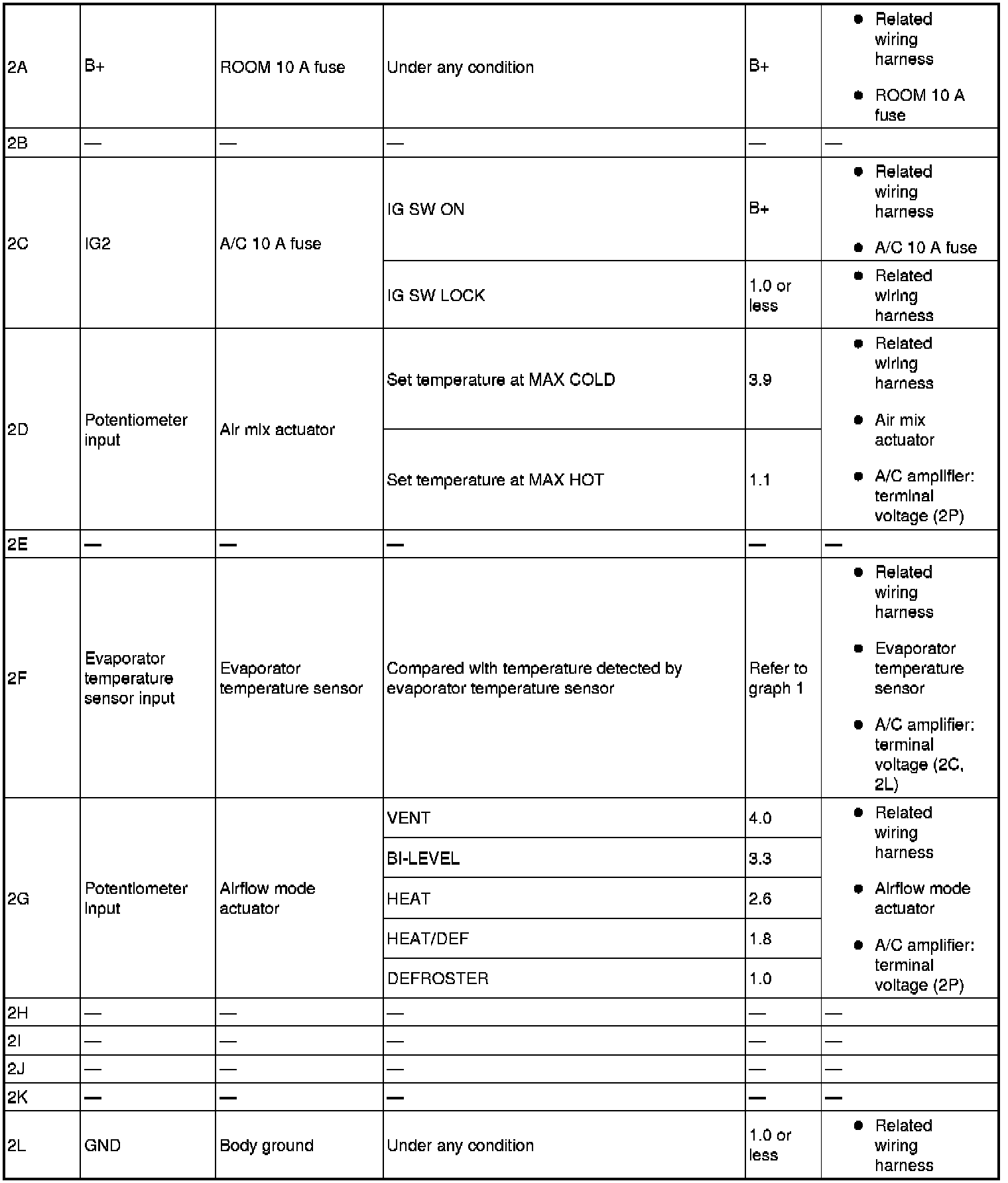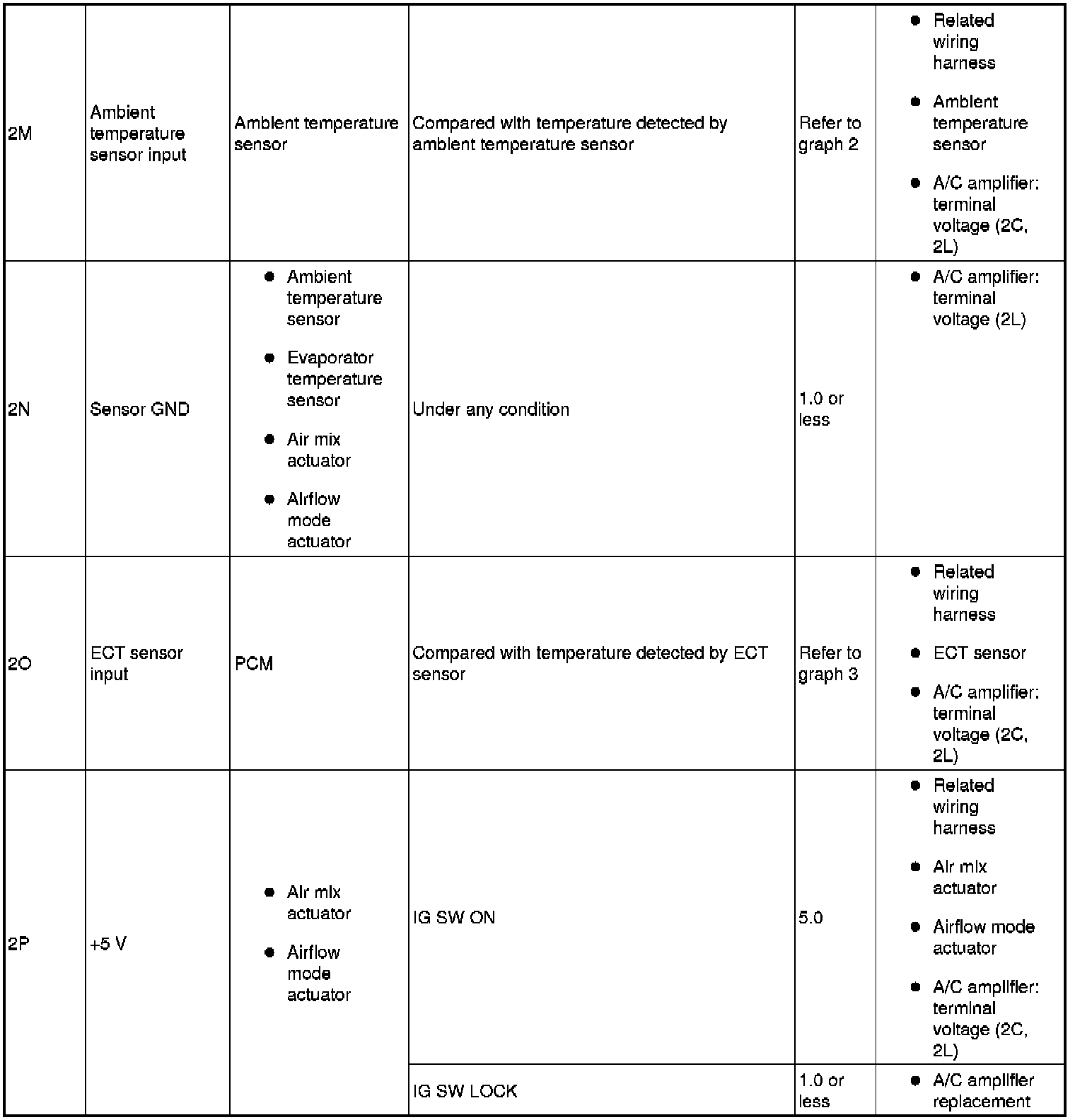 - If the parts under "Inspection item(s)" are found to be normal, replace the A/C amplifier.