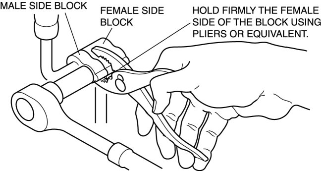1. Disconnect the block joint type pipes by grasping the female side of the block with pliers or similar tool and holding firmly, and then remove the connection bolt or nut.