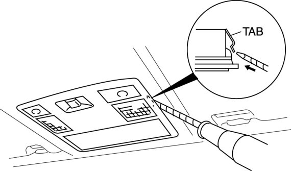 1. Insert a tape-wrapped flathead screwdriver into the gap between the headliner and the map light.