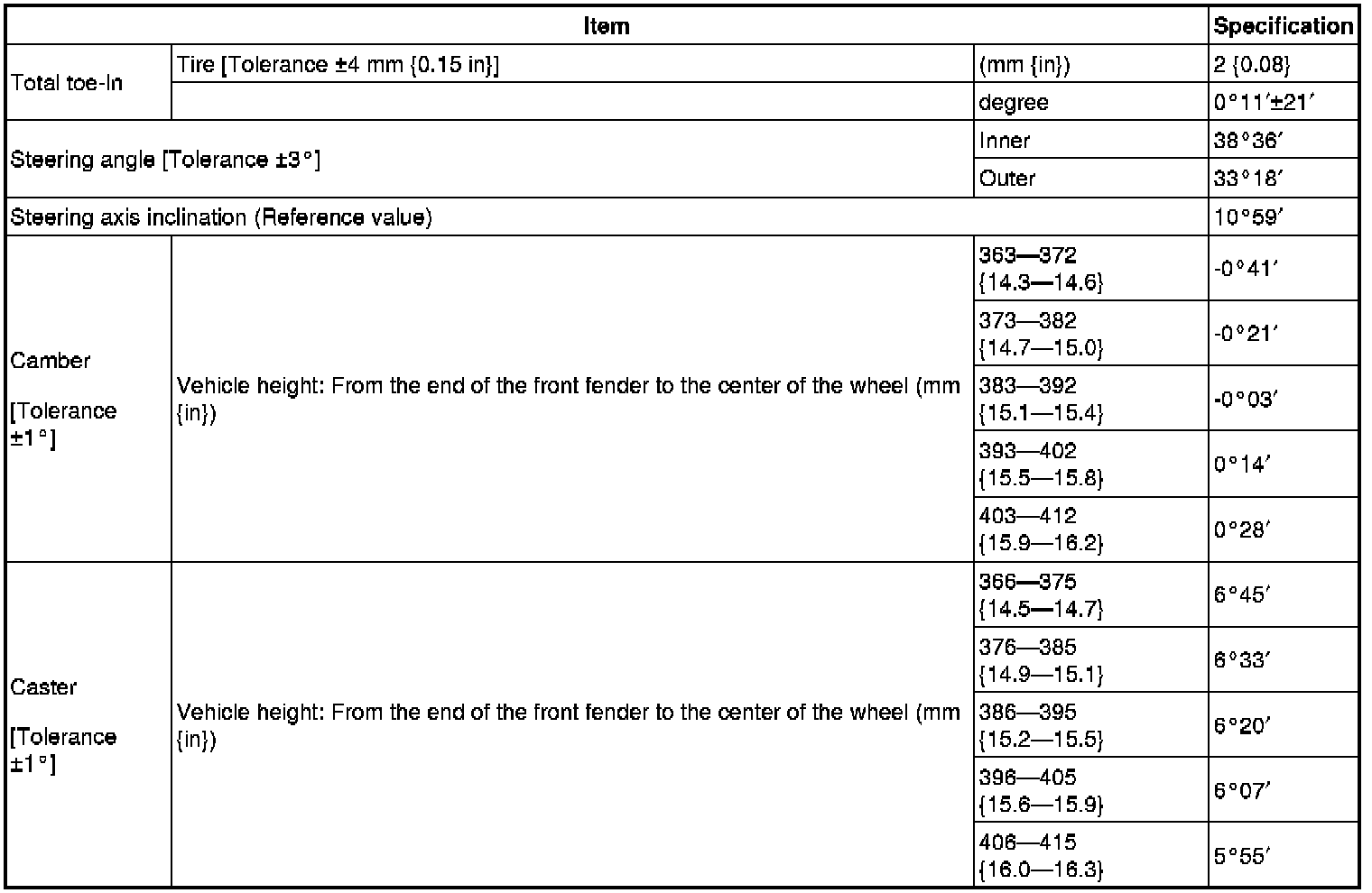 - Unloaded vehicle: Fuel tank is full. Engine coolant and engine oil are at specified level. Jack and tools are in designated position.
