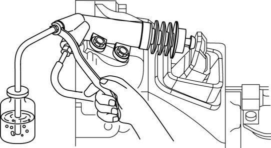 4. While the clutch pedal is being held down, the other person should loosen the bleeder screw, and bleed any fluid containing air bubbles. Once completed, tighten the bleeder screw.