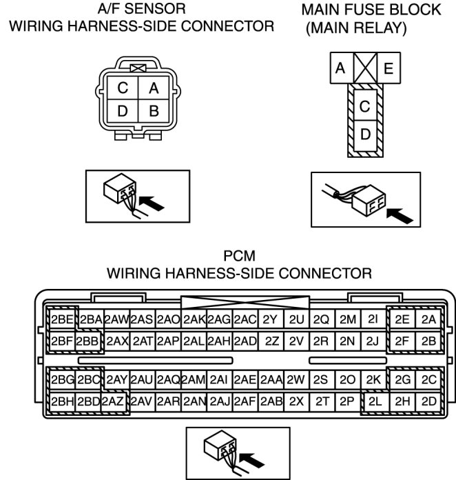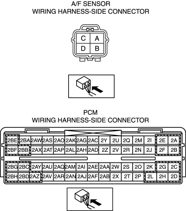 - If not within the specification, inspect the A/F sensor for an open or short circuit. Then if there is no malfunction in the wiring harness, replace the A/F sensor. Air Fuel Ratio (A/F) Sensor Removal/Installation
