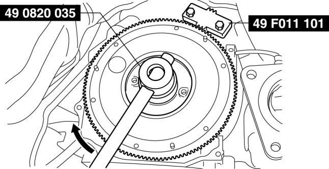 Install the SST to the flywheel. Tighten the locknut using the SST.