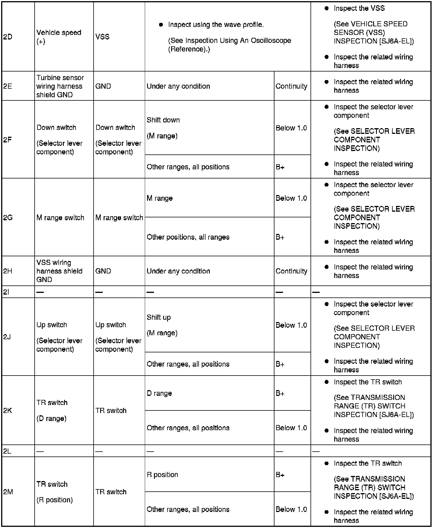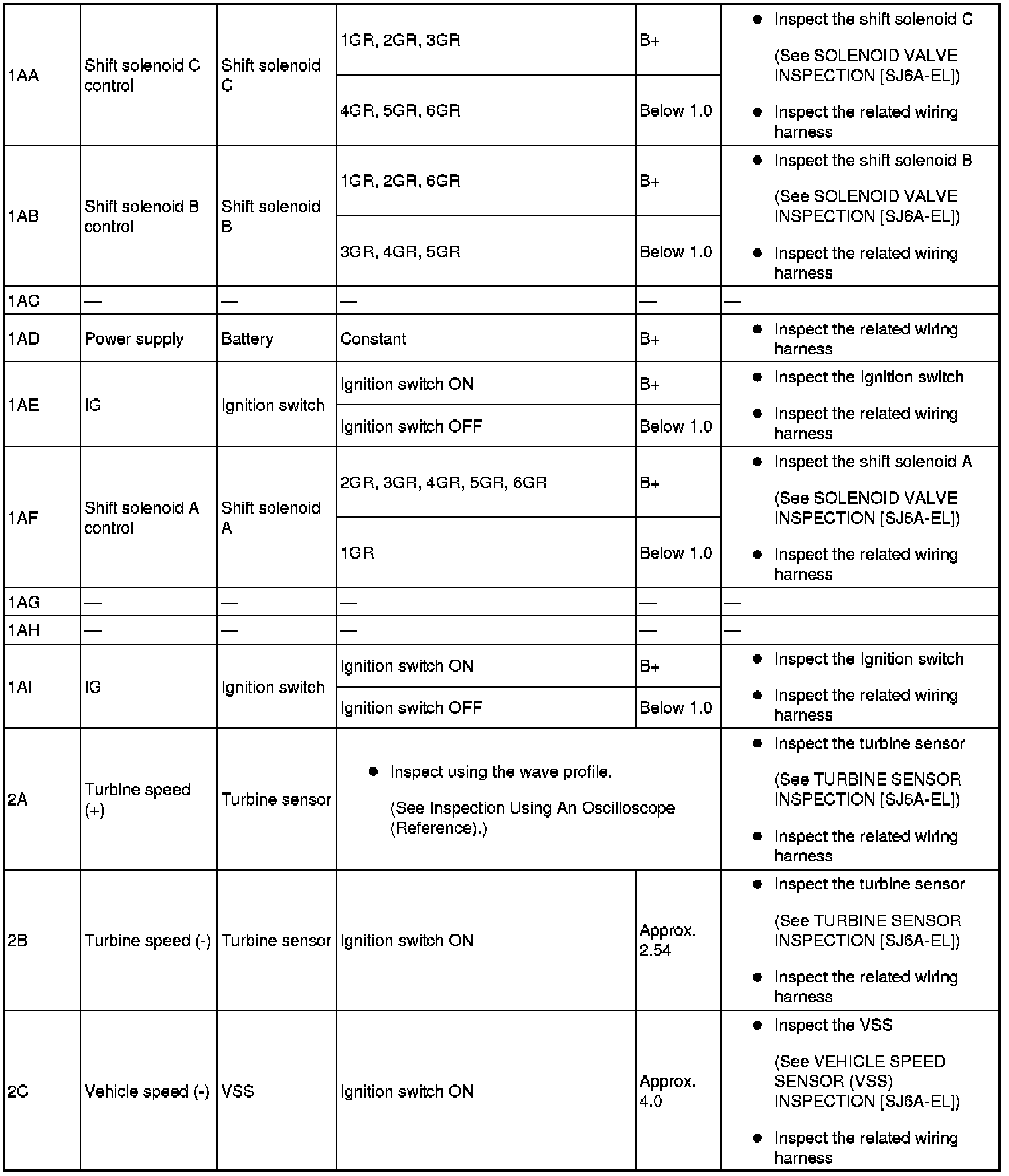 - Use the ground of terminal 1P and 1X of the TCM when measuring terminal voltage, as an error may occur when connecting the negative circuit tester to ground.