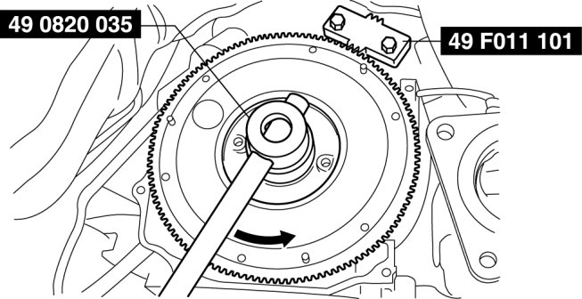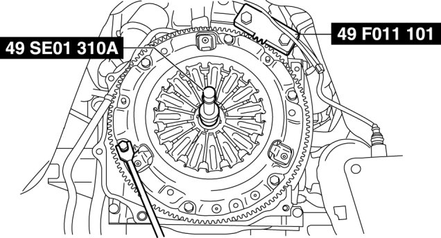 3. Secure the clutch disc to the flywheel using the SSTs.
