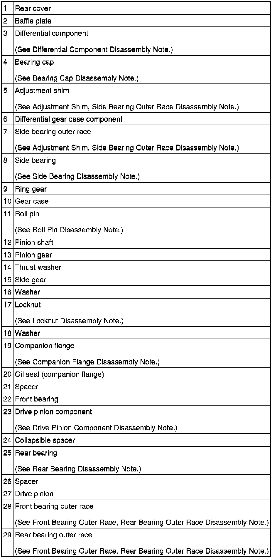 Differential Component Disassembly Note