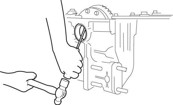 2. Remove the drive pinion component by tapping the locknut lightly using a plastic hammer.