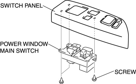 5. Remove the screws, then remove the power window main switch.