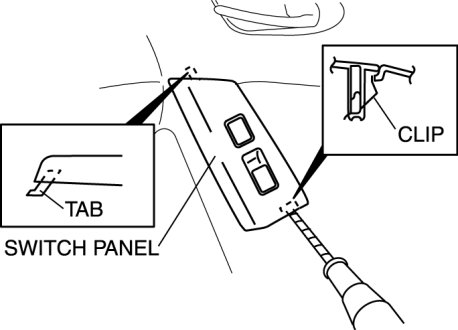 3. Remove the switch panel from the front door trim keeping the tab from catching.