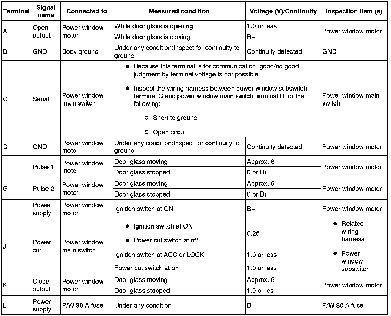 - If the system does not work properly even though the parts or related wiring harnesses do not have any malfunction, replace the power window sub switch.