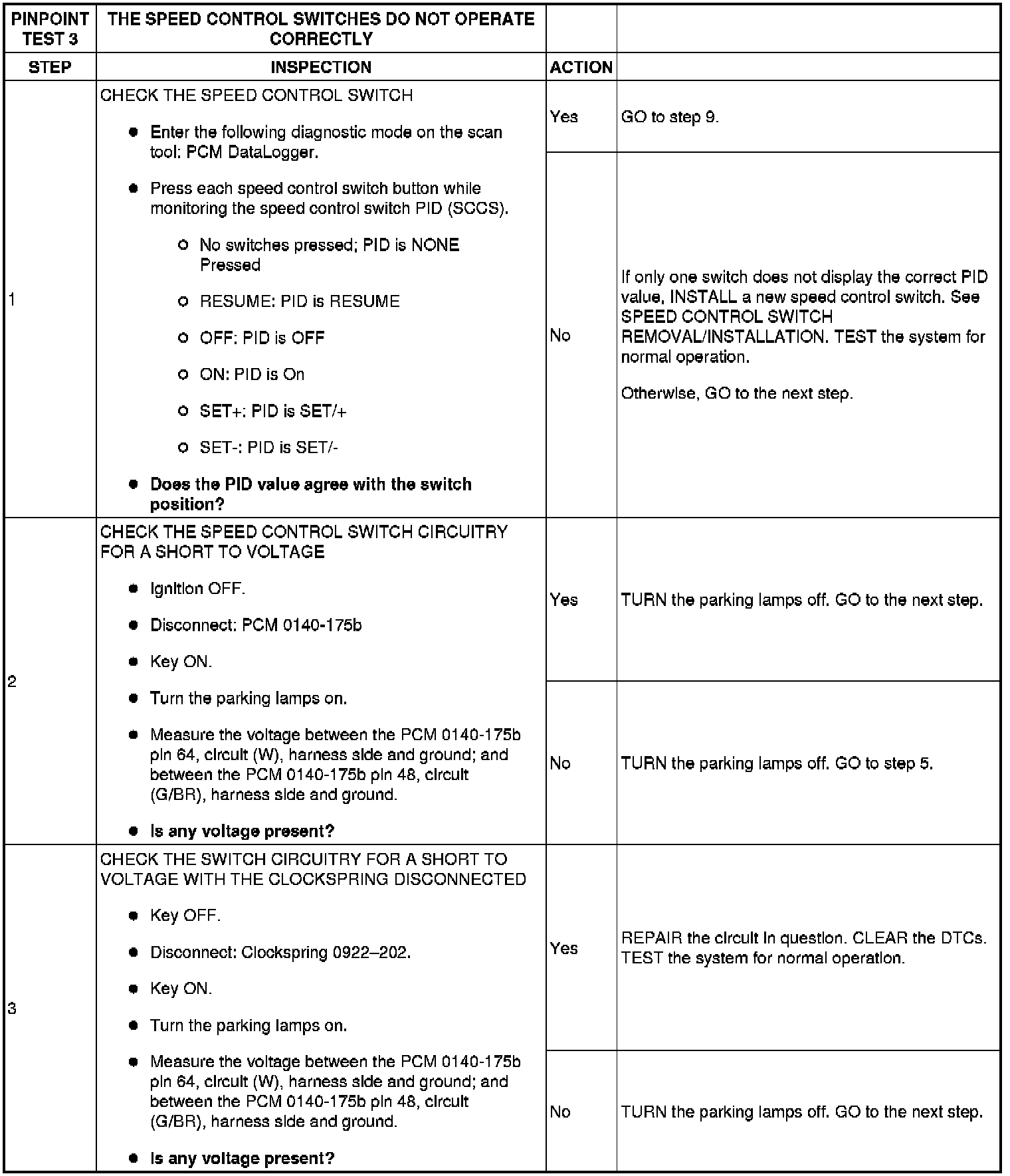 PINPOINT TEST 3: THE SPEED CONTROL SWITCHES DO NOT OPERATE CORRECTLY