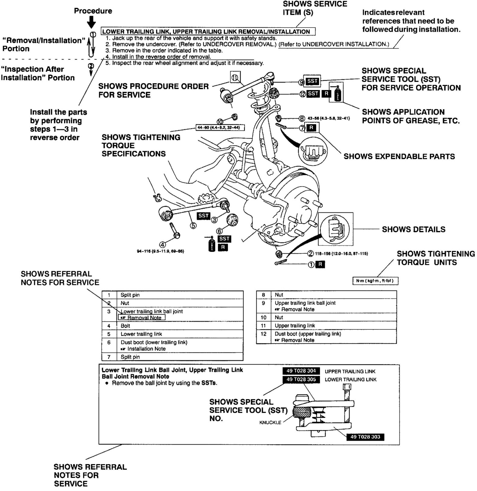 2. Expendable parts, tightening torques and symbols for oil, grease, and sealant are shown in the overview illustration. In addition, symbols indicating parts requiring the use of special service tools are also shown.