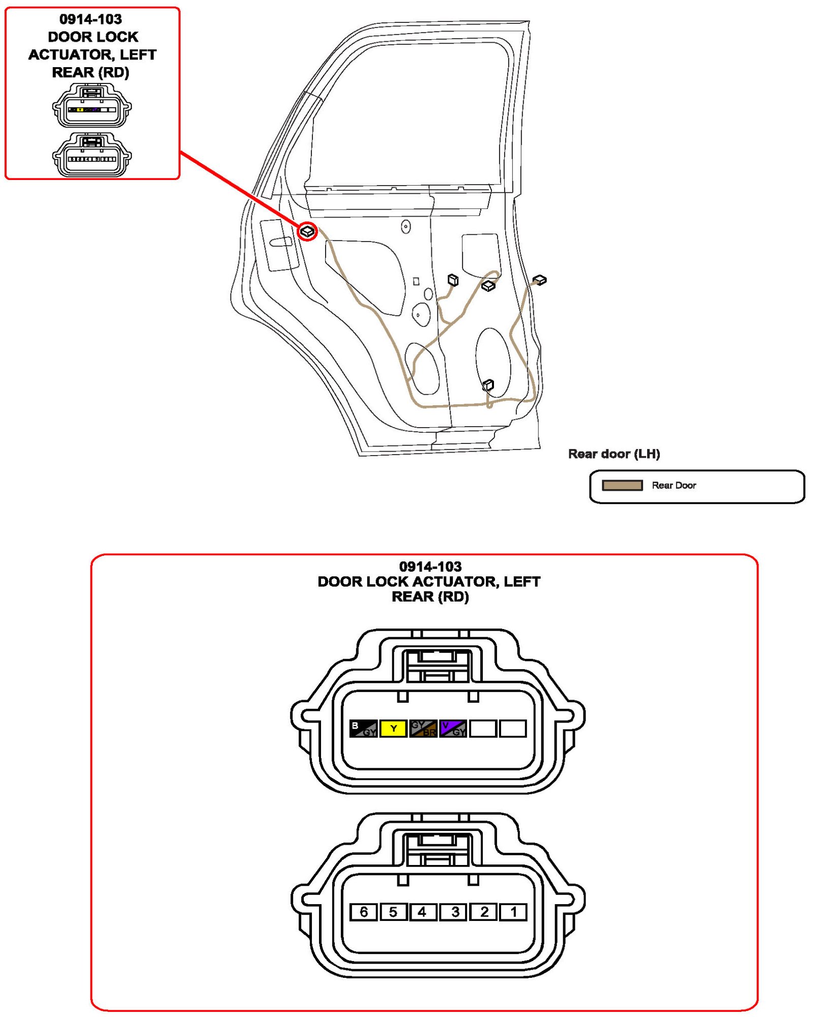 Door Lock Actuator, Left Rear: