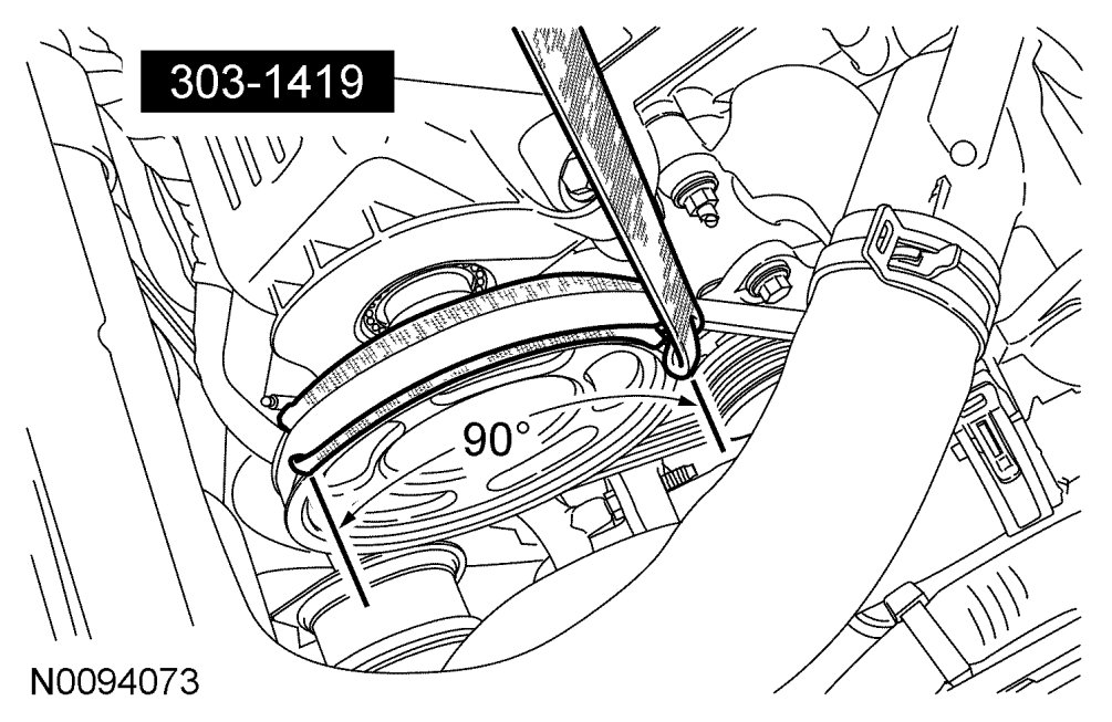 CAUTION:Failure to use the correct special tools, assembled as shown in the illustration, will result in damage to the coolant pump pulley and/or special tools.