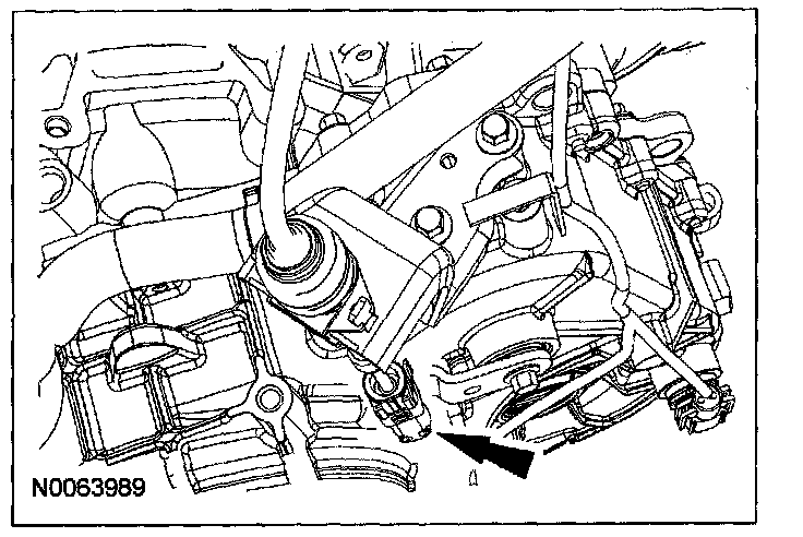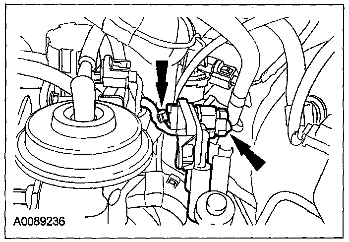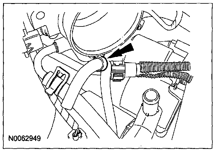 49. Attach the transaxle vent tube retainer to the throttle body.
