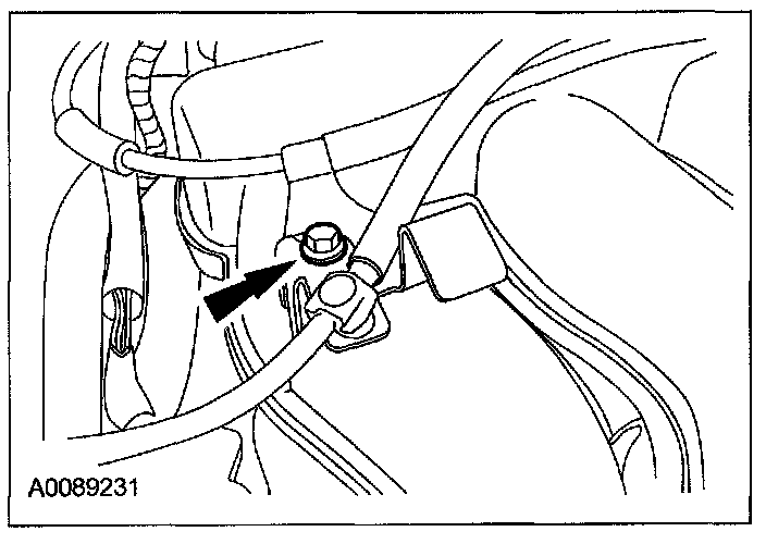 56. Install the transaxle cooler tube and the bracket bolt.