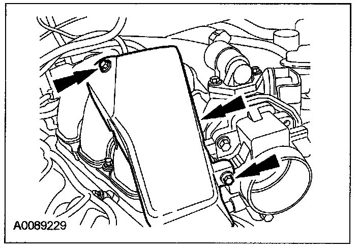 54. Position the accelerator cable snow shield and install the bolts.