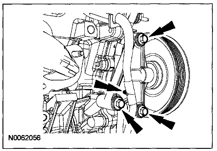 62. Install the A/C compressor and bolts.