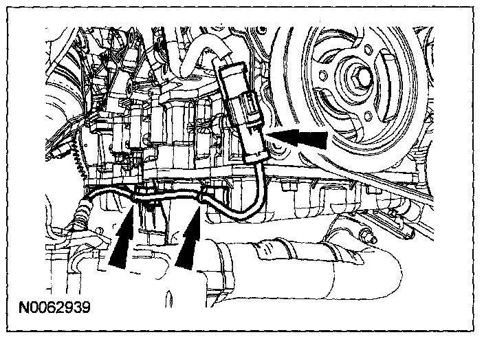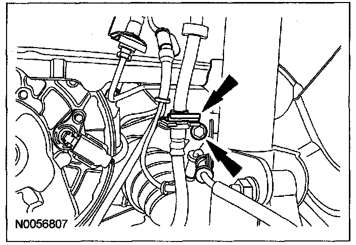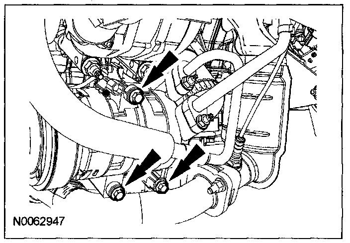 57. Connect the 2 transmission cooler tubes (1 shown).
