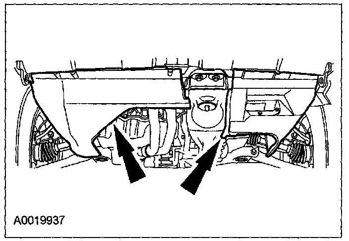 ^ Tighten the 2 cross brace bolts to 90 N-m (9.2 kgf-m, 66 ft-lb).
