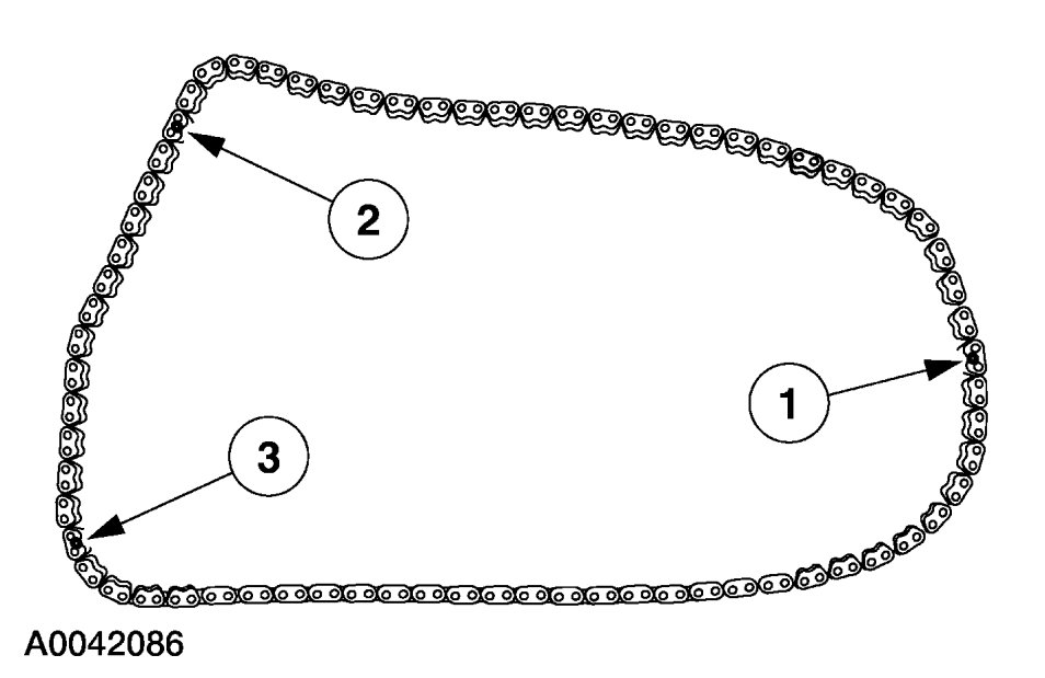 6. If timing marks on the timing chains are not evident, use a permanent-type marker to mark the crankshaft and camshaft timing marks on the LH and RH timing chains.