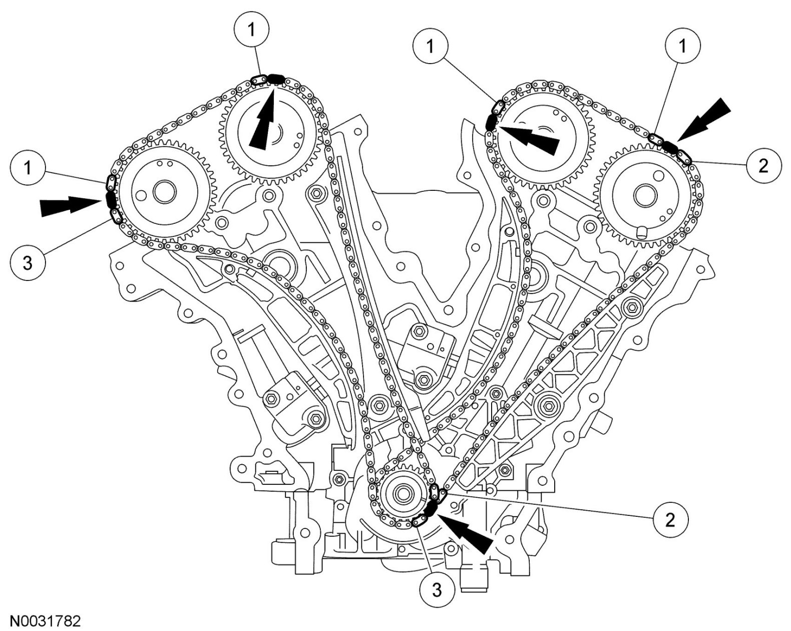 CAUTION:Failure to verify correct timing drive component alignment will result in severe engine damage.