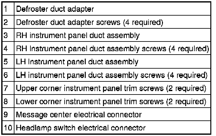 NOTE:The instrument panel trim needs to be positioned away from the instrument panel support to access the LH duct assembly upper center screw.