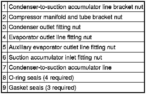 9. Remove the condenser-to-suction accumulator line.