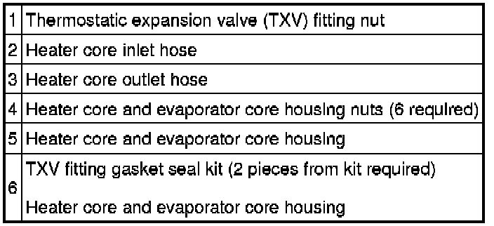 7. Remove the heater core and evaporator core housing in the following sequence.